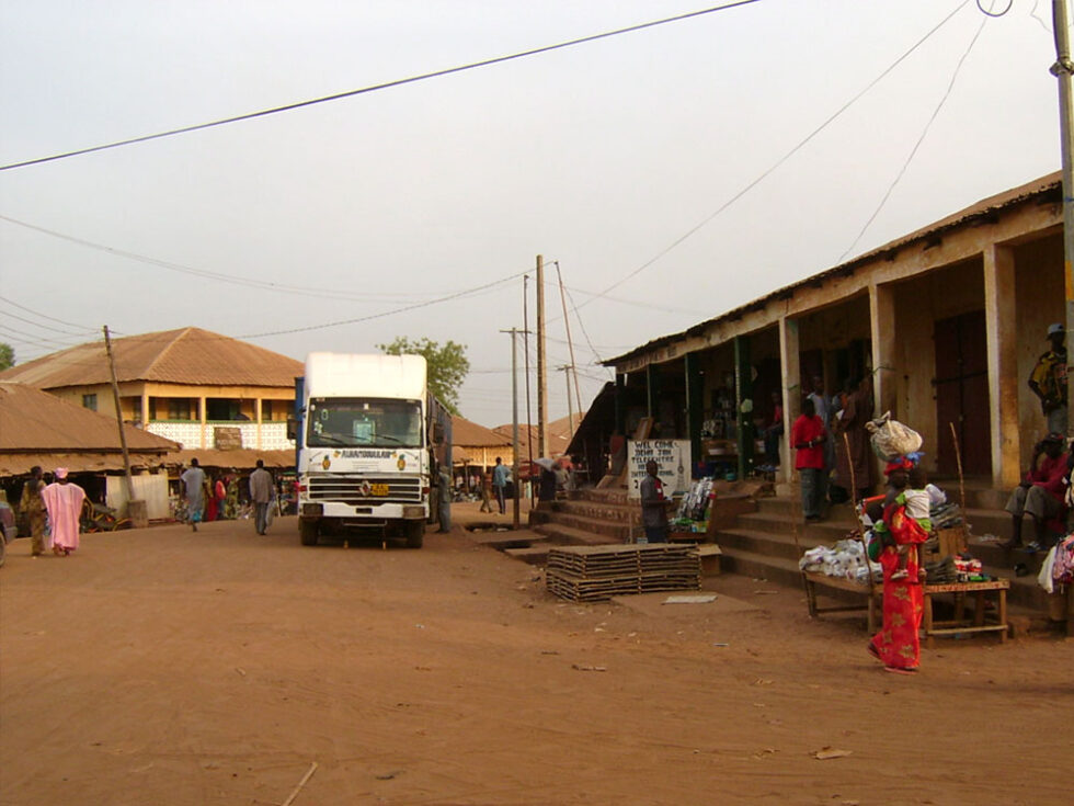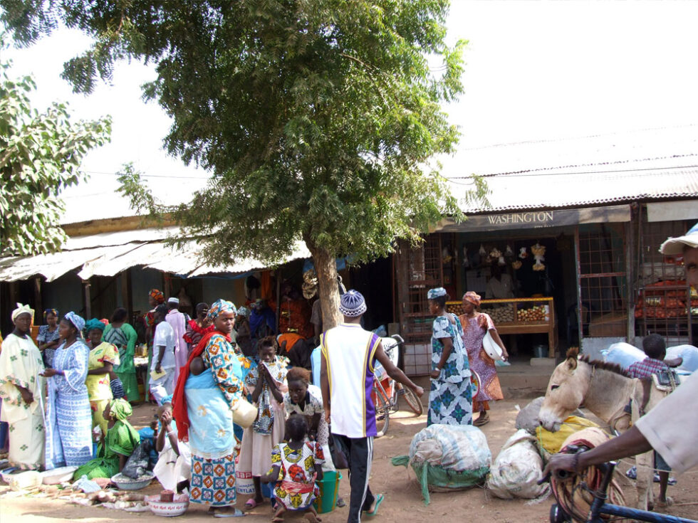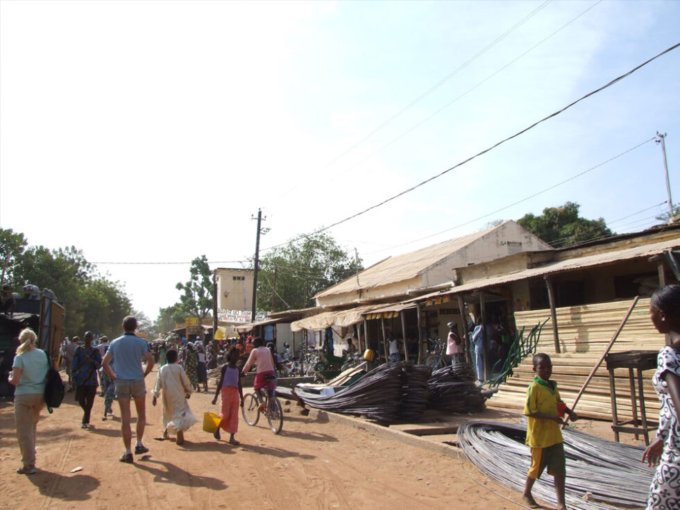 Efter en kort sejltur endte vi i Bassa Santa Su. En stor og livlig by – en af de største byer i det østlige Gambia. Det var godt vi havde vores guider med, for det var meget kaotisk, og nogle af de mennesker vi mødte var lidt for spændende. Vi gik rundt i byen, forbi snedkeren, benzintanken og en masse andre butikker til markedet, som vi gik igennem. Vi smagte en masse spændende ting; baobab-frugter, grøntsager, der har samme konsistens (og også smager som) kartoffelmos, friske appelsiner og små lækre grønne bananer. Dette var en stor oplevelse – og i Bassa Santa Su kom vi for alvor tæt på lokalbefolkningen og livet i en gambiansk storby.
