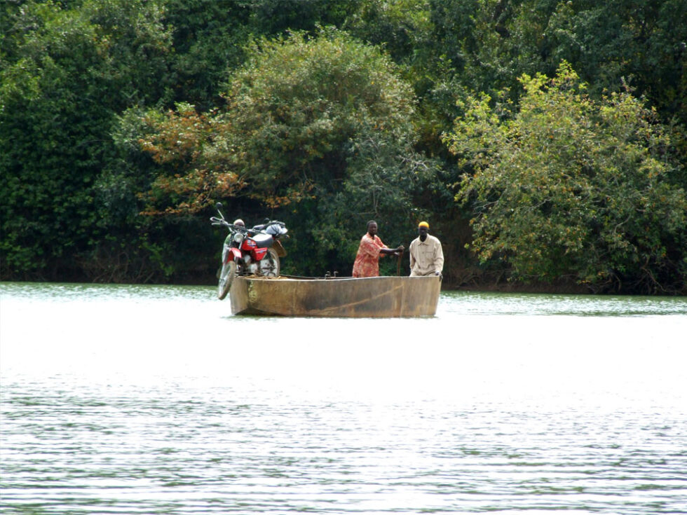 Det tager sin tid at komme med færgen. Der er uhyggelig lang kø. Køen gik gennem gaderne – men så fik vi set lidt mere af den afrikanske kultur. Vores guide måtte bestikke sig til at vi kunne komme udenom køen – for nogle holder i kø i flere dage – og det havde vi ikke tid til. Der er ialt 3 færger ved denne forbindelse. Alt efter hvilken færge man kommer med tager det mellem 25 minutter og 1 time at sejle de 4 kilometer over floden til Barra.