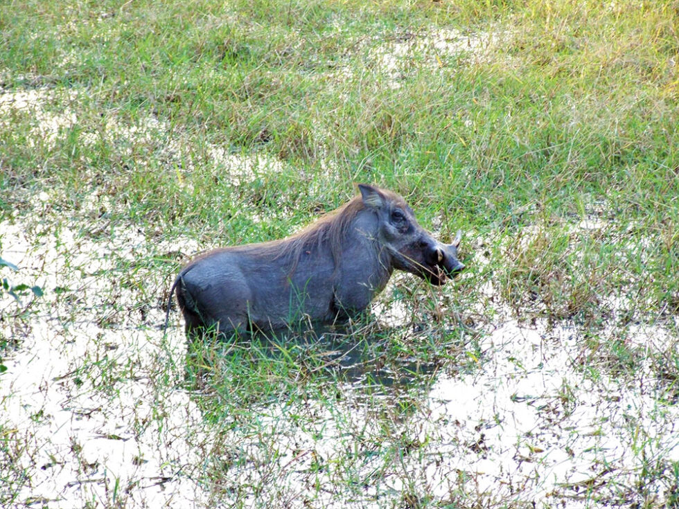 Efter flodsafarien listede vi hen til et af de mange udsigtspunkter. 5 meter fra os stod et vortesvin i vandet og spiste. Det var en meget speciel oplevelse at se det så tæt på. Hold da op hvor et vortesvin smasker.