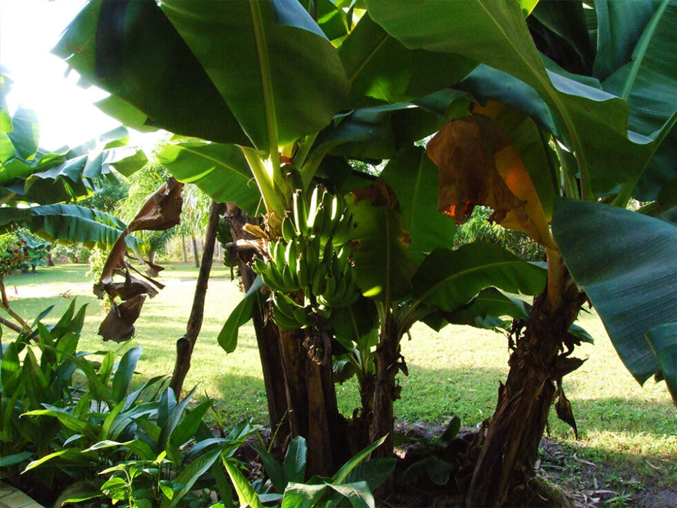 Efter besøget i compounden kørte vi videre til frokost. Vi kørte i støvet og drejede ned ad en lille vej. En vagt åbnede en låge for os – og pludselig var vi i paradis. Det var ved denne lille grønne oase vi skulle spise frokost. Der var tid til at gå en tur rundt om poolen, som så meget indbydende ud. Frokosten bestod at bønner og hvidløg til forret, kartofler og kød til hovedret og 2 bananer til dessert.